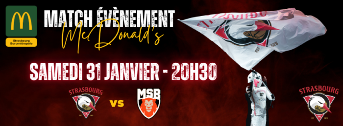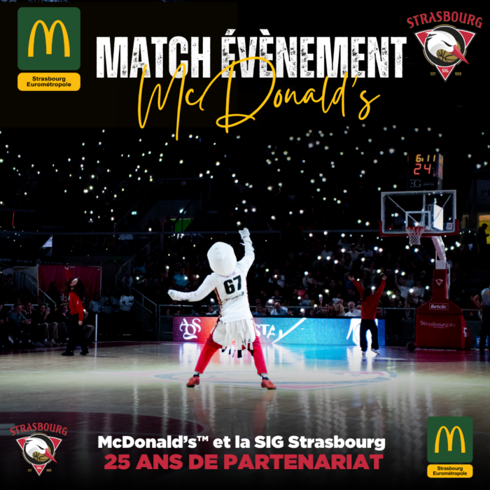 Depuis plus de 25 ans, McDonald’s et la SIG Strasbourg partagent une histoire commune faite de passion, d’émotions et de collectif. Pour célébrer ce partenariat emblématique, McDonald’s est fier de parrainer un match exceptionnel, placé sous le signe du spectacle et de la convivialité 😍
