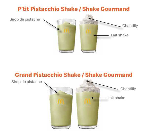 Retrouvez le Pâtit Shake Pistacchio ainsi que le Shake Pistacchio et le Shake Gourmand Pistacchio, tous les deux dans leur format normal ou grand. đ°