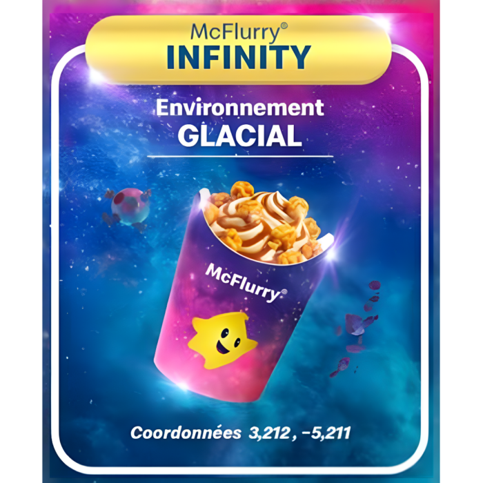 Le McFlurry® Infinity associe la glace iconique à la vanille à un nappage Caramel et des éclats de Popcorn Caramélisé 🍿