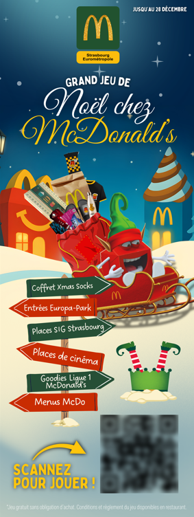 Jusqu’au 28 dĂ©cembre, McDonald’s Strasbourg EuromĂ©tropole vous gatte dans le Grand Jeu de NoĂ«l ! 🎄